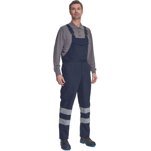 • férfi mellesnadrág 7 cm széles fényvisszavető csíkokkal • rugalmas betét a hátsó részen • 2 oldalsó zseb + 1 érmezseb • 2 oldalzseb • 1 multifunkcionális mellzseb • rugalmas pántok műanyag csatokkal • meghosszabbítható szárhossz • 65% PES/35% pamut, 195 g/m2