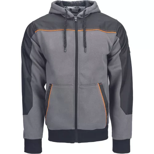 • férfi cipzáras kapucnis kardigán • puha tapintású, belül fésült anyagból • 2 kenguruzseb elöl • Oxford 600D erősítés a váll- és könyökrészeken • rugalmas passzé az ujjakon és a kardigán alján • hurkok, amelyekkel a CREMORNE télikabáthoz csatlakoztatható