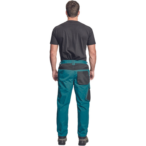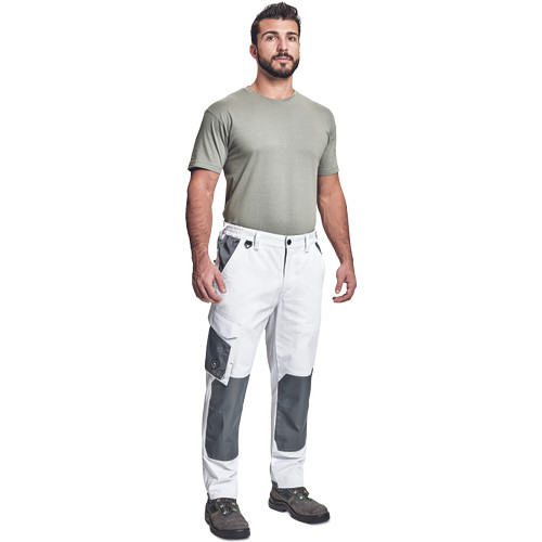 • munkanadrág pamutgazdag anyagból • modern szabással • megerősített térdrész térdvédőtartó zsebbel • 2 zseb elöl • 1 többfunkciós zseb • tépőzáras hátsó zseb • rugalmas derék • D-gyűrű • leengedhető szárak