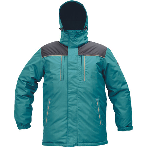 • férfi kapucnis télikabát • polár bélésű gallér • hosszított hátrész • 2 cipzáras mellkasi zseb • 2 cipzáras oldalzseb • 1 tépőzáras belső zseb • a kabát alja húzózsinórral állítható • tépőzárral állítható mandzsetta • levehető kapucni