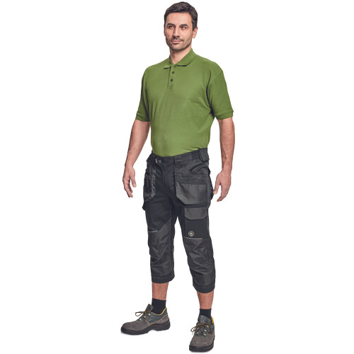 Dinamikus vonalvezetésű, modern szabású férfi 3/4-es nadrág, rugalmas, innovatív TRIFIBETEX® anyagból. Alacsony, gumírozott derékkal készül, láb- és üleprészen tartós, tripla varrásokkal. Praktikus kialakítás: tágas, multifunkcionális első zsebek szerszámtartó pánttal, 2 hátsó zseb Oxford erősítéssel, a combon telefontartó zseb tépőzáras zsebfedővel, külön zsebek vonalzónak, késnek, kalapácsnak, egyedi repülőzseb, D-gyűrű, és szerszámtartó hurok a derékpánton. A munkaruha színeivel harmonizáló fényvisszavető elemekkel egészítettük ki.