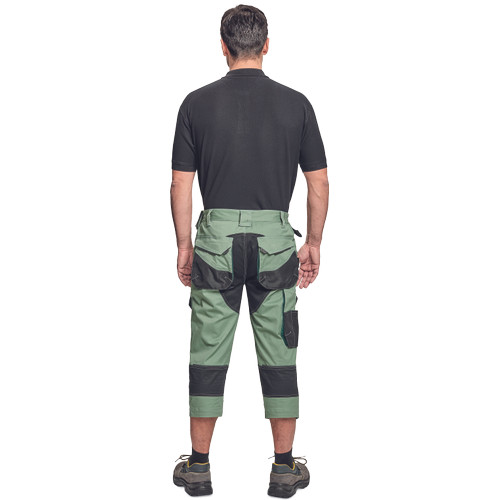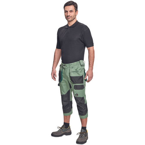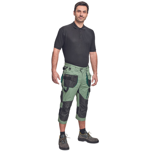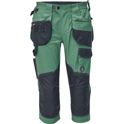Dinamikus vonalvezetésű, modern szabású férfi 3/4-es nadrág, rugalmas, innovatív TRIFIBETEX® anyagból. Alacsony, gumírozott derékkal készül, láb- és üleprészen tartós, tripla varrásokkal. Praktikus kialakítás: tágas, multifunkcionális első zsebek szerszámtartó pánttal, 2 hátsó zseb Oxford erősítéssel, a combon telefontartó zseb tépőzáras zsebfedővel, külön zsebek vonalzónak, késnek, kalapácsnak, egyedi repülőzseb, D-gyűrű, és szerszámtartó hurok a derékpánton. A munkaruha színeivel harmonizáló fényvisszavető elemekkel egészítettük ki.