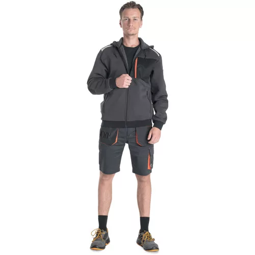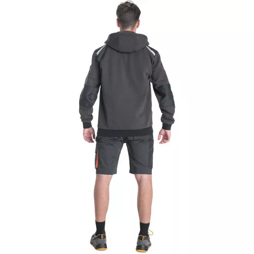 • férfi cipzáras kapucnis kardigán • 2 oldalzseb • 1 mellzseb cipzárral • megerősített vállrészek fényvisszavető csíkokkal • rugalmas derékpánt és mandzsetta