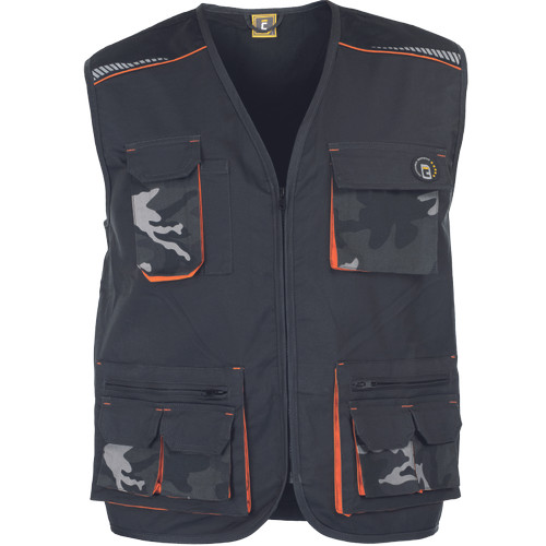 • Férfi munkamellény rendkívül tartós sztreccs anyagból • elöl cipzárral • multifunkcionális zsebek • Oxford 600D megerősített vállrészek • fényvisszavető elemek