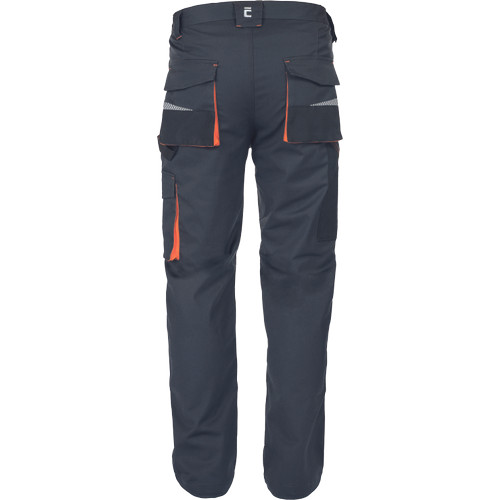 • férfi munkanadrág, rendkívül tartós rugalmas anyagból • elasztikus derékkal • multifunkcionális zsebek • Oxford 600D megerősített térdzsebek térdvédők behelyezéséhez • nyomtatott szegmensekre bontott fényvisszavető részletek • állítható szárhossz