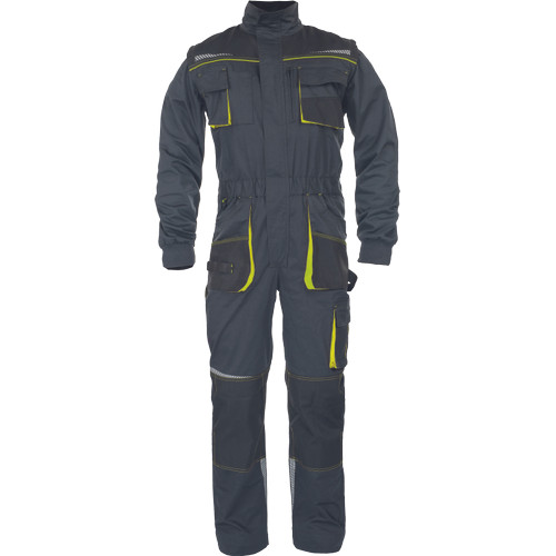 • munkaruházat, rendkívül tartós rugalmas anyagból, elasztikus derékkal • elöl cipzárral, védőfedéllel • multifunkcionális zsebek • 2 mellzseb, az egyik mobiltartó zsebbel • Oxford 600D megerősített térdzsebek térdvédők behelyezéséhez • levehető ujjak, kötött elasztikus mandzsettákkal • szegmensekre bontott fényvisszavető részletek • állítható szárhossz