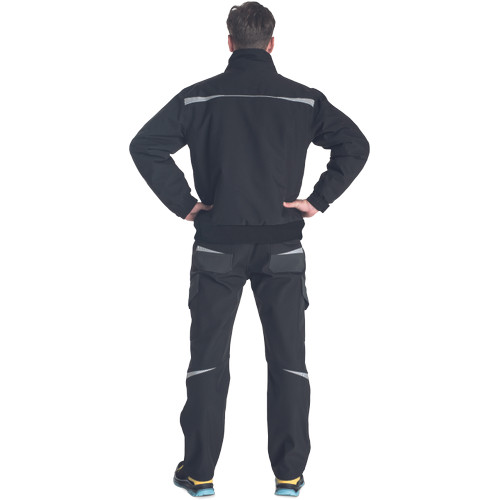 Vízálló téli pilótadzseki levehető, bélelt kapucnival. A dzseki cipzárral záródik, amelyet kívülről tépőzárral rögzíthető fedés borít. Két cipzáras oldalzsebbel, két mellzsebbel és két belső zsebbel rendelkezik. Ujjain rugalmas mandzsetta, alján rugalmas kötött szegély található. Fényvisszaverő részletei fokozzák a láthatóságot.