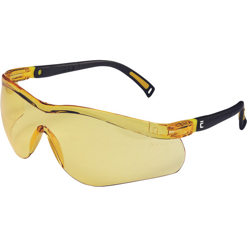 »27 grammos, polikarbonát látómezős szemüveg állítható hosszúságú és dőlésszögű szárral, sportos kivitelben. A látómező karcálló és páramentes , EN 166 sz. szabvány szerinti F osztály - kis energiájú becsapódás elleni védelem, 1. optikai osztály, a sárga látómező az EN 170 sz. szabvány szerinti, UV sugárzás ellen védő szűrővel rendelkezik.