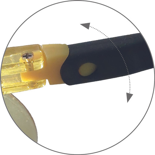 »27 grammos, polikarbonát látómezős szemüveg állítható hosszúságú és dőlésszögű szárral, sportos kivitelben. A látómező karcálló és páramentes , EN 166 sz. szabvány szerinti F osztály - kis energiájú becsapódás elleni védelem, 1. optikai osztály, a sárga látómező az EN 170 sz. szabvány szerinti, UV sugárzás ellen védő szűrővel rendelkezik.