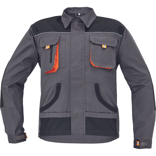 • férfi munkakabát • cipzáras kivitelben, tépőzáras hajtókával • 2 tépőzáras mellzseb • 2 multifunkcionális oldalzseb • OXFORD poliészter erősítés könyökrészeken és a vállakon • 100% pamut, 235g/m2