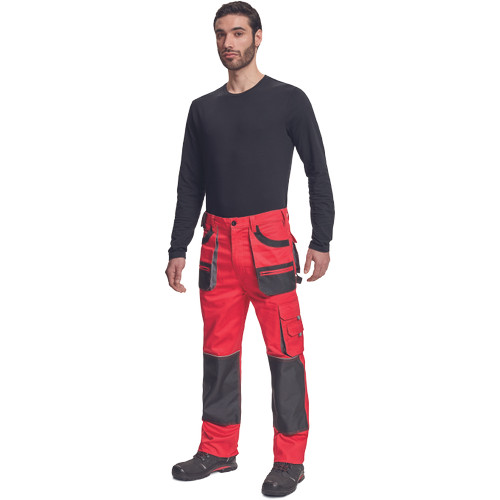 • férfi munkanadrág • 6 multifunkciós zseb • OXFORD poliészter erősítésekkel az igénybevett részeken • térdvédő behelyezésére alkalmas, megerősített térdrész • leengedhető szárak • anyaga 100% pamut, 235g/m2