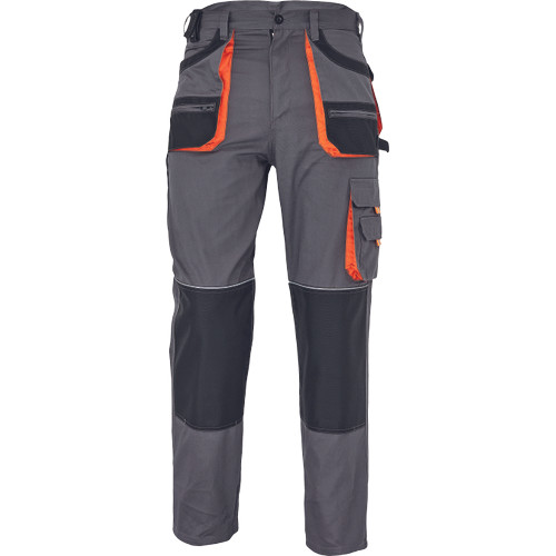 • férfi munkanadrág • 6 multifunkciós zseb • OXFORD poliészter erősítésekkel az igénybevett részeken • térdvédő behelyezésére alkalmas, megerősített térdrész • leengedhető szárak • anyaga 100% pamut, 235g/m2