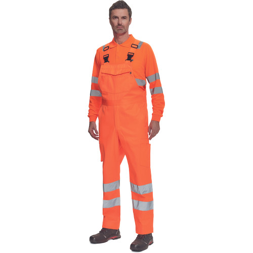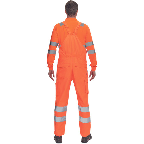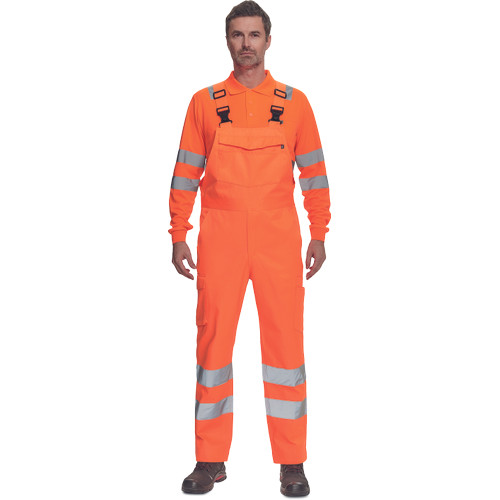 • férfi Hi-Vis mellesnadrág 7 cm széles fényvisszavető csíkokkal • rugalmas betét a hátsó részen • 2 oldalsó zseb + 1 érmezseb • 2 oldalzseb • 1 multifunkcionális mellzseb • rugalmas pántok műanyag csatokkal • meghosszabbítható szárhossz