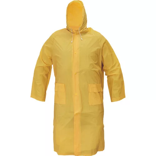 • hosszított vízálló védőköpeny kapucnival • könnyű, textil hatású PVC-ből, ragasztott varratokkal • 2 elülső hajtókás zseb • patenttal állítható mandzsetta • szellőzők a háton és a hónaljrészen • zsinórral állítható kapucnival