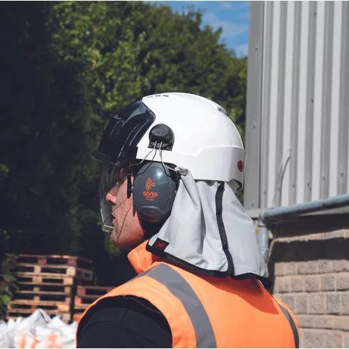 Az EVO® tarkóvédő védelmet biztosít a napfény káros UV sugárzásával szemben: UPF 50+ EN 13758-1:2002. Mosható 40°C-on, és illeszkedik a JSP Evolution® sisakokhoz. Figyelemfelkeltő narancs színben is rendelhető.