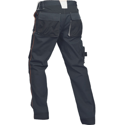 • férfi nadrág alacsonyabban szabott, rugalmas derékkal és multifunkcionális zsebekkel • 2 oldalzseb • multifunkcionális zseb az oldalán • 2 hátsó zseb • kalapácstartó • D- gyűrű • megerősített térdrész és térdzseb Oxford 600D anyagból térdvédő behelyezéséhez • tartós tripla varratok a szárakon és az üleprészen • 5 cm-rel leengedhető szárak • fényvisszavető díszítés • dekoratív  és kontrasztos, jól látható varratok