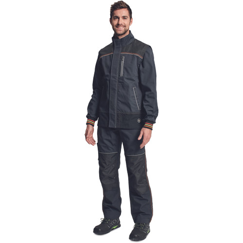 • férfi munkakabát állógallérral, modern mintázattal • 2 nagy oldalzseb, 1 multifunkcionális mellzseb • D-gyűrű, megerősítő rátét a vállakon Oxford 600D anyagból