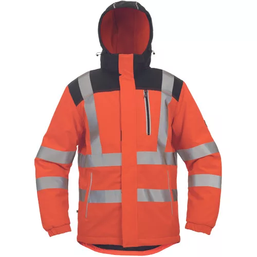 • bélelt jólláthatósági télikabát levehető kapucnival, TPU membránnal és hosszított hátrésszel • a vállrészen Oxford 600D anyagból készült megerősítő rátétekkel van ellátva • 1 kontrasztos színű cipzáras zsebbel, 2 oldalzsebbel, 2 zárható belső zsebbel rendelkezik • az alsó szegély zsinórral állítható • a derékrészen, az ujjakon és a vállakon 5 cm-es nyomtatott fényvisszavető csíkok kerültek