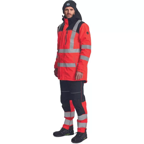 • bélelt jólláthatósági télikabát levehető kapucnival, TPU membránnal és hosszított hátrésszel • a vállrészen Oxford 600D anyagból készült megerősítő rátétekkel van ellátva • 1 kontrasztos színű cipzáras zsebbel, 2 oldalzsebbel, 2 zárható belső zsebbel rendelkezik • az alsó szegély zsinórral állítható • a derékrészen, az ujjakon és a vállakon 5 cm-es nyomtatott fényvisszavető csíkok kerültek