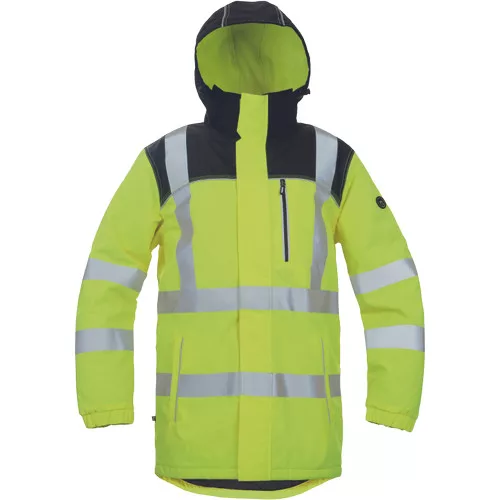 • bélelt jólláthatósági télikabát levehető kapucnival, TPU membránnal és hosszított hátrésszel • a vállrészen Oxford 600D anyagból készült megerősítő rátétekkel van ellátva • 1 kontrasztos színű cipzáras zsebbel, 2 oldalzsebbel, 2 zárható belső zsebbel rendelkezik • az alsó szegély zsinórral állítható • a derékrészen, az ujjakon és a vállakon 5 cm-es nyomtatott fényvisszavető csíkok kerültek