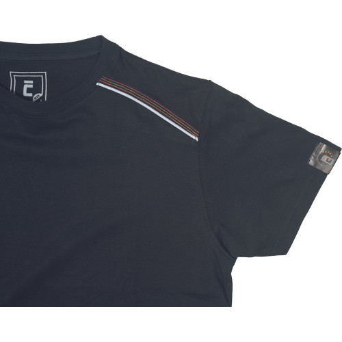 • férfi póló fésült pamutból • fényvisszavető szegéllyel a vállrészen • dekoratív és kontrasztos tűzések