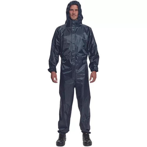 • vízálló overall kapucnival • tépőzáras hajtókával fedett cipzár • belül hegesztett varrtatok • gumírozott derékrész • gumírozott mandzsetták • bevarrt gumiszalag a szárakon bokánál és a kapucni peremén
