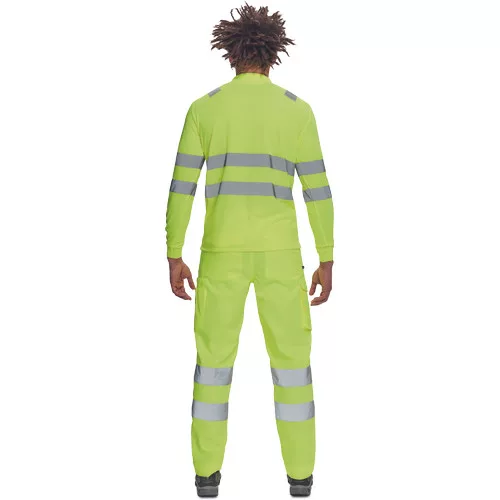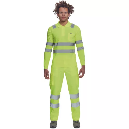• Hi-Vis hosszú ujjú póló 5 cm széles fényvisszavető csíkokkal • 3 gombbal záródó nyakkivágás • rugalmas mandzsetta • 1 mellzseb