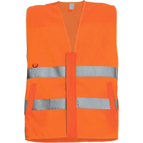 • jólláthatósági mellény 2 fényvisszavető csíkkal • hajtókás cipzárral • 2 oldalsó cipzáras zseb • D-gyűrű