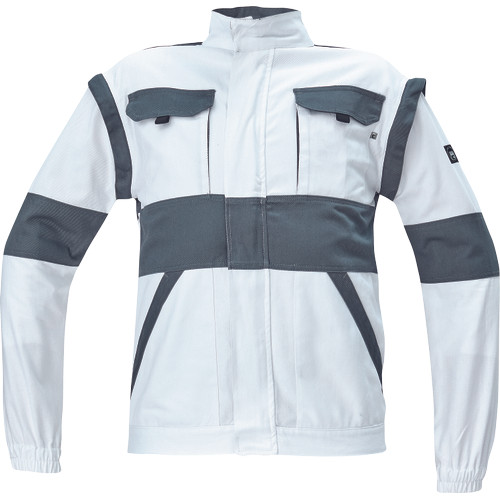 • férfi cipzáras munkakabát levehető ujjakkal • 2 oldalzseb, 2 mellzseb • megerősítés a váll- és könyökrészeken • rugalmas mandzsetta és derékpánt • anyag: 100% pamut, anyagvastagság: 260 g/m2