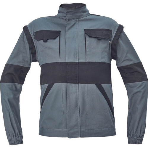 • férfi cipzáras munkakabát levehető ujjakkal • 2 oldalzseb, 2 mellzseb • megerősítés a váll- és könyökrészeken • rugalmas mandzsetta és derékpánt • anyag: 100% pamut, anyagvastagság: 260 g/m2