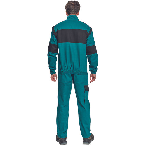 • férfi cipzáras munkakabát levehető ujjakkal • 2 oldalzseb, 2 mellzseb • megerősítés a váll- és könyökrészeken • rugalmas mandzsetta és derékpánt • anyag: 100% pamut, anyagvastagság: 260 g/m2