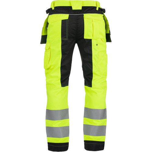• men's HI-VIS working pants with an elastic waistband • 2 multifunctional flying pockets • 2 printed 7.5 cm wide reflective stripes on bottom legs • Oxford 600D reinforcement at knee areas with optional knee pad insertions • adjustable leg length
