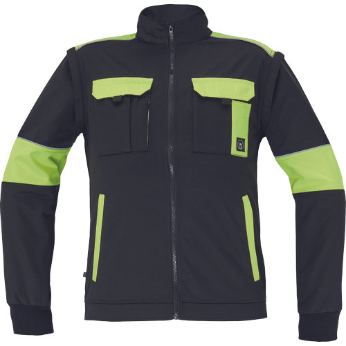 • férfi cipzáras munkakabát levehető ujjakkal • 2 oldalzseb • 2 mellzseb • Oxford 600D erősítés a váll-és könyökrészeken • rugalmas mandzsetta és derékszegély • fényvisszavető szegélyek