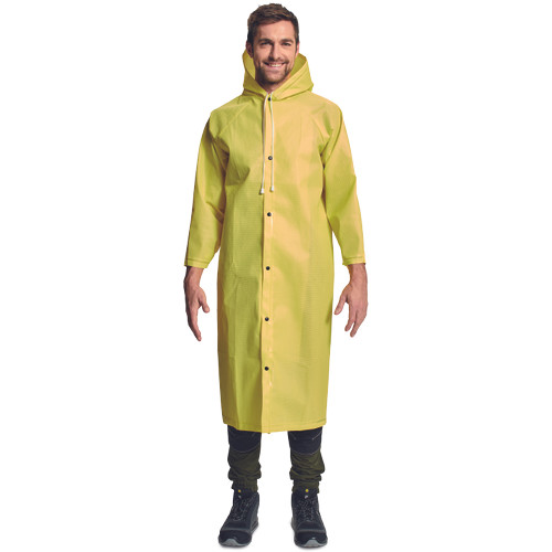 • vízálló kabát kapucnival, ragasztott varratokkal • a kabát patenttal záródik • a hónaljrészen szellőzőbetétes kialakítású • mandzsettái szintén patenttal állíthatóak • a kapucni zsinórbehúzással állítható • anyag: 100%-ban újrahasznosítható, nagy sűrűségű PE • vízoszlop: 13 000 mm