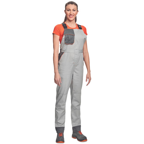 • női munkanadrág könnyű pamut-PES kevertszálas anyagból • nőies szabás • dekoratív paszpol kontrasztos színekkel • légáteresztő, köszönhetően hálós betéteknek • zsebfedővel fedett zsebek • a nadrágszárak hossza 5 cm-rel meghosszabbítható • 2 oldalsó zseb • 1 hátsó zseb • 1 mellkasi zseb, belül D-gyűrűvel •tartós anyagú • puhább, hajlékonyabb szövet