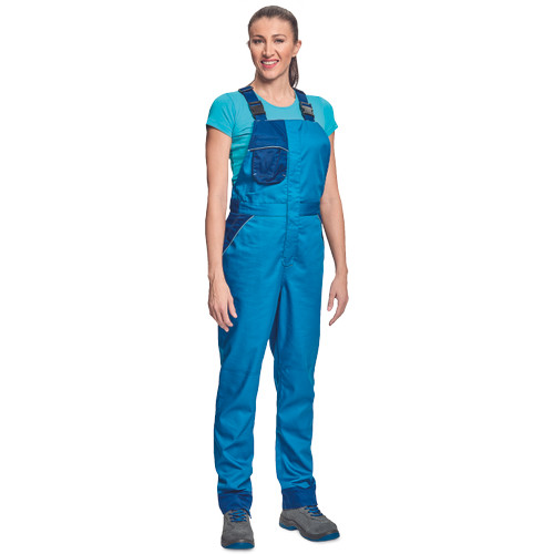 • női munkanadrág könnyű pamut-PES kevertszálas anyagból • nőies szabás • dekoratív paszpol kontrasztos színekkel • légáteresztő, köszönhetően hálós betéteknek • zsebfedővel fedett zsebek • a nadrágszárak hossza 5 cm-rel meghosszabbítható • 2 oldalsó zseb • 1 hátsó zseb • 1 mellkasi zseb, belül D-gyűrűvel •tartós anyagú • puhább, hajlékonyabb szövet