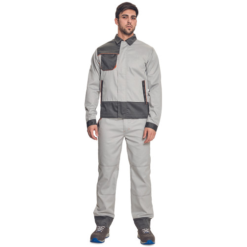 • férfi munka dzseki pamut-PES kevertszálas anyagból • dekoratív paszpol kontrasztos színekben • jó szellőzés a hálós betéteknek köszönhetően • fedett cipzár és zsebek • 2 oldalzseb • 1 mellzseb, benne rejtett D-gyűrűvel • ipari mosással tisztítható
