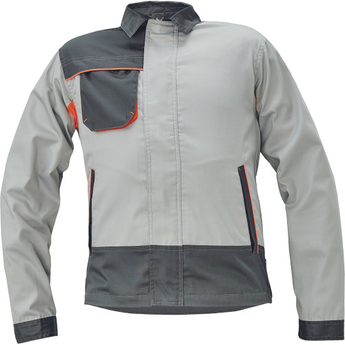 • férfi munka dzseki pamut-PES kevertszálas anyagból • dekoratív paszpol kontrasztos színekben • jó szellőzés a hálós betéteknek köszönhetően • fedett cipzár és zsebek • 2 oldalzseb • 1 mellzseb, benne rejtett D-gyűrűvel • ipari mosással tisztítható