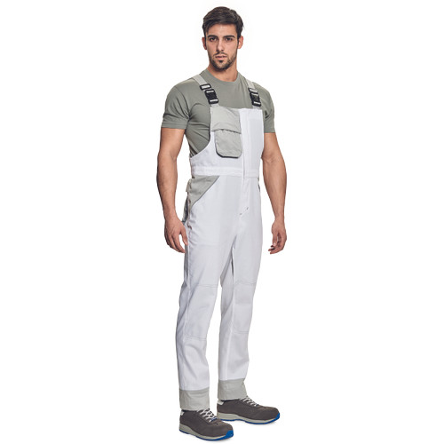 • férfi munkanadrág könnyű pamut-PES kevertszálas anyagból • dekoratív paszpol kontrasztos színekkel • légáteresztő, köszönhetően hálós betéteknek • zsebfedővel fedett zsebek • a nadrágszárak hossza 5 cm-rel meghosszabbítható • 2 oldalsó zseb • 1 hátsó zseb • 1 mellkasi zseb, belül D-gyűrűvel •tartós anyagú • puhább, hajlékonyabb szövet