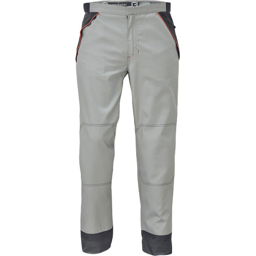 • férfi munkanadrág könnyű pamut-PES kevertszálas anyagból • dekoratív paszpol kontrasztos színekkel • hálós betétek • zsebfedős zsebek • a derékbőség tépőzárral állítható • 5 cm-rel leengedhető szárak • 2 első zseb, az egyikben D-gyűrű található • 1 hátsó zseb •tartós anyagú • puhább, hajlékonyabb szövet