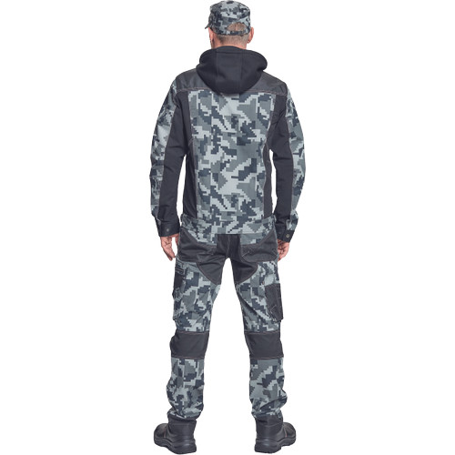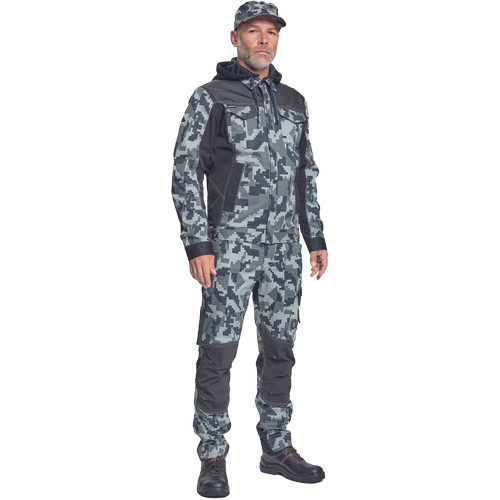 • férfi munkakabát férfi munkakabát innovatív, pamutgazdag, rugalmas TRIFIBETEX, illetve TRIFIBETEXPRO® anyagokból CORDURA® betétekkel, digitális terepmintával, fém gombok, állítható ujjvégek, 2 oldalsó zseb, 2 cipzáras mellkasi zseb, fényvisszavető csíkok