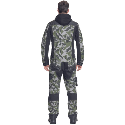 • férfi munkakabát férfi munkakabát innovatív, pamutgazdag, rugalmas TRIFIBETEX, illetve TRIFIBETEXPRO® anyagokból CORDURA® betétekkel, digitális terepmintával, fém gombok, állítható ujjvégek, 2 oldalsó zseb, 2 cipzáras mellkasi zseb, fényvisszavető csíkok