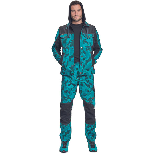 • férfi munkakabát férfi munkakabát innovatív, pamutgazdag, rugalmas TRIFIBETEX, illetve TRIFIBETEXPRO® anyagokból CORDURA® betétekkel, digitális terepmintával, fém gombok, állítható ujjvégek, 2 oldalsó zseb, 2 cipzáras mellkasi zseb, fényvisszavető csíkok