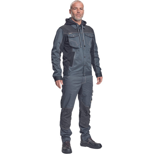 • munkakabát innovatív, pamutgazdag, rugalmas TRIFIBETEX® és TRIFIBETEXPRO® anyagokból CORDURA® betétekkel • levehető kapucnival • fém gombok • állítható mandzsetták • 2 oldalzseb • 2 gombos mellzseb • fényvisszavető csíkok