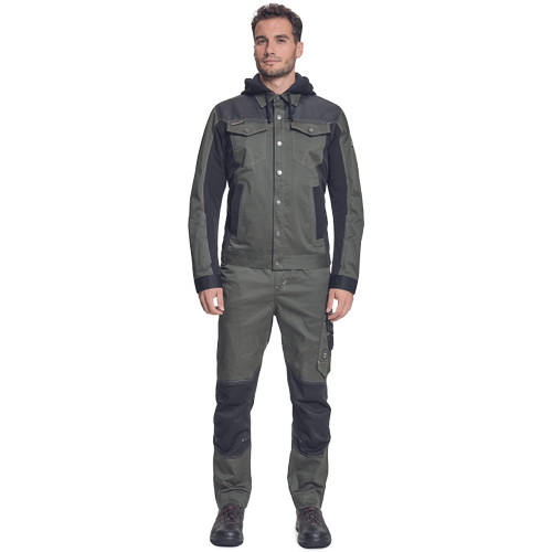 • munkakabát innovatív, pamutgazdag, rugalmas TRIFIBETEX® és TRIFIBETEXPRO® anyagokból CORDURA® betétekkel • levehető kapucnival • fém gombok • állítható mandzsetták • 2 oldalzseb • 2 gombos mellzseb • fényvisszavető csíkok
