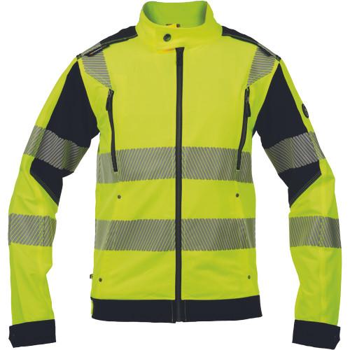 • férfi HI-VIS kabát állógallérral és cipzárral • rugalmas, innovatív TRIFIBETEX VIS® anyag • 2 oldalzseb • 2 cipzáras mellzseb • szegmentált, nyomtatott 7 cm széles fényvisszavető csíkok a törzsön, ujjakon és a vállrészen • patenttal állítható mandzsetta
