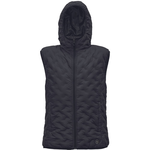 Markáns vonalvezetésű, tollpehely bélésű, cipzáras mellény kapucnival. Modern kialakítású, kényelmesen feszülő vonalainak köszönhetően stílusos megjelenést kölcsönöz. Gumírozott derékrésszel és két mély, cipzárral záródó oldalzsebbel készül. Anyaga 100% poliészter. Bélés 100 % poliészter, 70 g/m², taffeta. Töltőanyag: 905 tollpehely, 10% toll.