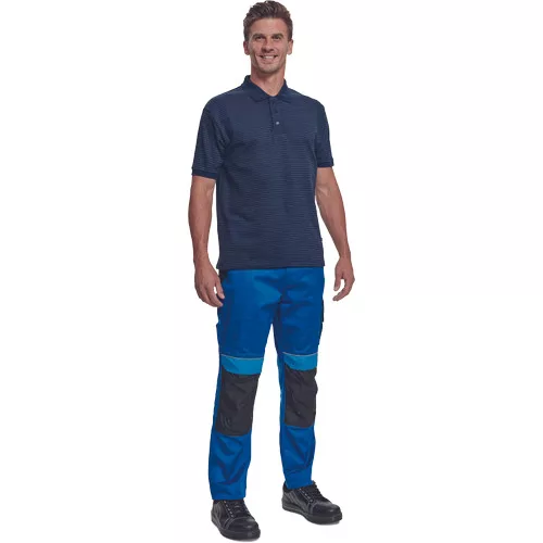 • rövid ujjú galléros pamut póló, antisztatikus szálakkal • univerzális minta • műanyag gombolású nyakkal