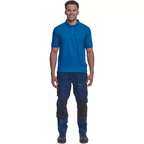 • rövid ujjú galléros pamut póló, antisztatikus szálakkal • univerzális minta • műanyag gombolású nyakkal