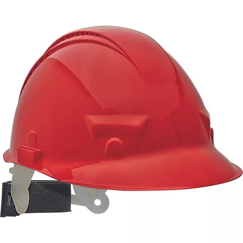 » ellenálló HDPE sisak szellőző kivitelben 6 pontos, műanyag hevederrel és automatikusan mérethez igazodó fejkosárral (53-62 cm) » hőmérséklet: -20 °C- tól 50 °C-ig » élettartam: 5 év » tömeg: 330 g » szabvány: EN 397